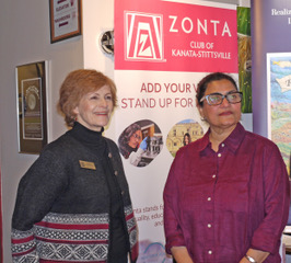 The film was followed by a presentation from special guest speaker Rajnish Sharma, hosted in partnership with the Zonta Club of Kanata-Stittsville. Rajnish Sharma is Program Coordinator with Immigrant Women Services Ottawa (IWSO), a community-based agency dedicated to supporting immigrant and racialised women as they navigate life in Canada. A short question period followed the presentation with further questions about the work that IWSO does to support immigrant women and how we might be able to help. Rajnish is pictured here with Judith.